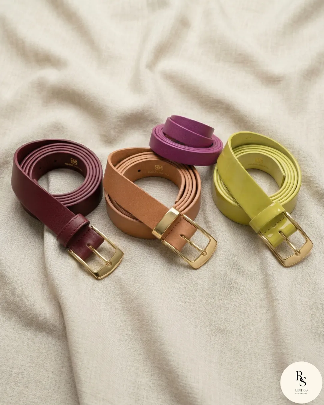 2 cores de fivela disponíveis e 2 tipos de textura. Pedido mínimo: 10 unidades. Cores: preto, amarelo, vermelho, rosa, marrom, caramelo, bege.